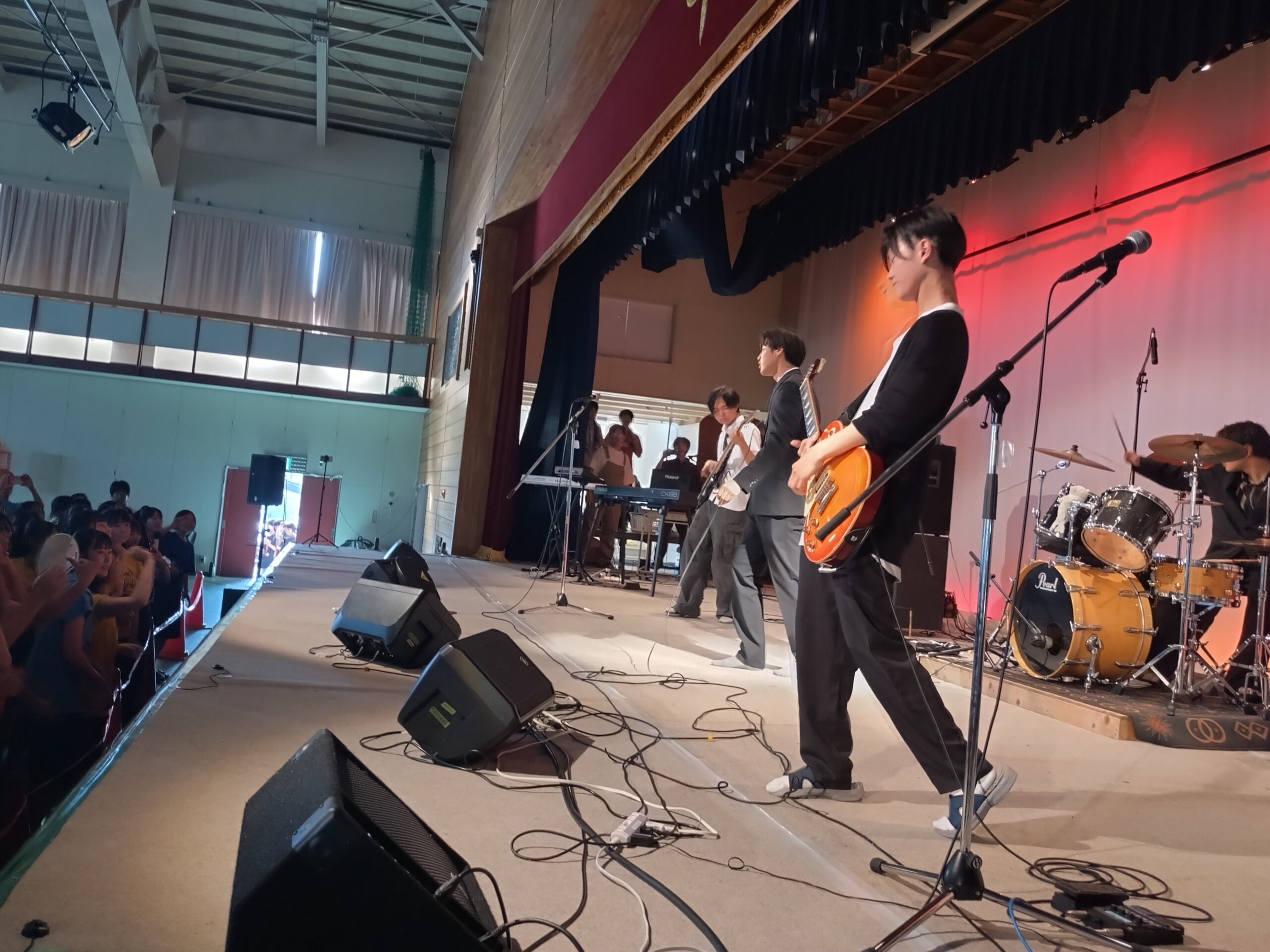 本校は地域の催しに声をかけていただくことがたいへん多く、特に夏は毎週土日にどこかで誰かが演奏しているほどです。商店街のイベント、花火大会、小学校の縁日、市内の音楽イベントなど多岐にわたります。その町で暮らす一介の高校生がいつも通学カバンを持って歩いているその場所で、その一日だけはギターを携えて愛と平和を叫ぶ。そんなステキな活動を、関係するとてもたくさんの方々の支えのもとで行っています。