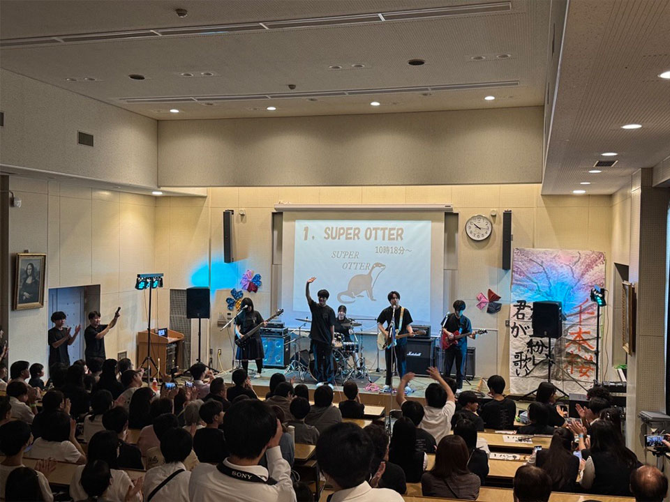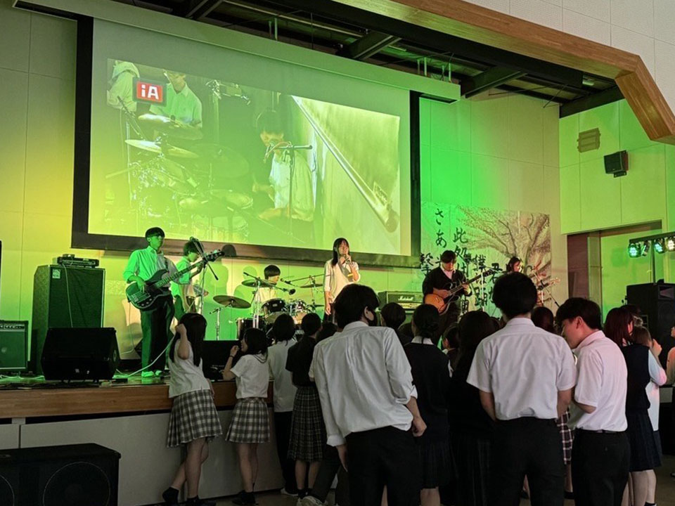 創部30年の歴史がある本校の軽音楽部は、8年連続で全国大会に出場しており、文化祭での演奏には1,000名もの方にお越しいただいています。