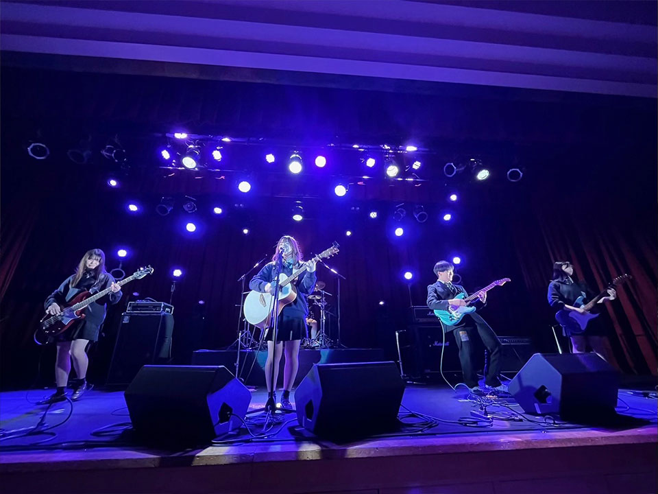 令和4年に「宮城県高文連軽音楽専門部」に登録をして正式に活動を始めた歴史の浅い部ですが、令和5年度の宮城県高等学校対抗バンド合戦において、夏季県大会奨励賞・1年生大会奨励賞・新人大会奨励賞を受賞、令和6年度の同合戦においても、新人大会奨励賞の実績があります。主な練習場所は、校内に設置してある2か所のスタジオと4つの教室で、教室で練習をおこなう際には楽器や機材をその都度移動させています。校内発表の場としては、文化祭やオーディション、YAMAHA バンドクリニック等があり、校外発表の場としては、「松島パークフェスティバル高校生の部」や「泉区民ふるさと祭/学生ステージ(高校大学連携ステージ)」、「合同Live(本校多目的ホール・他校音楽室やホール等で実施)」等があります。本校ならではの特徴的な活動としては、島村楽器と連携して「楽器の選定・メンテナンス・PA設置及び操作方法のレクチャー・店舗イベントへの参加」等を行ったり、ヤマハミュージックジャパンから講師を派遣していただき、演奏・バンド活動の基礎、基本に関する講習会を実施したりしています。