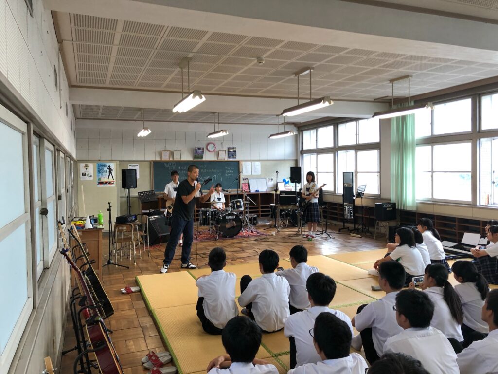 森山さんは、軽音楽部がある全国の高校を訪れ、部で管理する楽器のメンテナンスや音響機材の設置に関するアドバイス、楽器の技術指導や近隣の高校同士でおこなう合同音楽イベントの開催に向けた調整などに携わっています。このほか、各地の軽音楽連盟が主催する大会運営のお手伝いや、まだ軽音楽部の連盟などが存在しない地域での活動のサポートも行っているそうです。