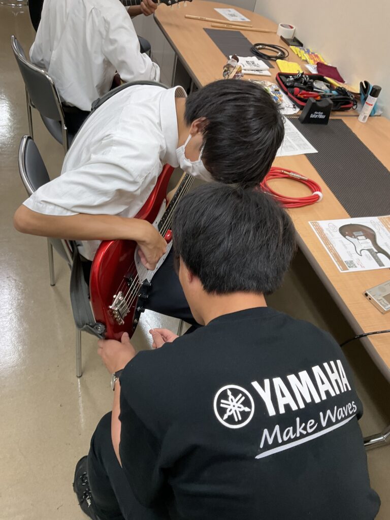 「2025年は、私一人だけでも合計168校を訪れました。楽器メーカーとして、楽器を丁寧に扱うことが演奏技術の向上に繋がり、楽器の構造を理解することでトラブルを未然に防ぐことに繋がるということを伝えています。軽音楽部に携わる高校生みんなに『楽器に対する意識向上』をしてもらうのが我々のゴールです」と語ります。「大会で勝ちたい!」「オリジナル曲のアレンジを教えてほしい!」といった要望をもらうことも多いですが、基本的にはまずは楽器に目を向けてもらうことを主眼に置いており、「学校にある楽器で、今まで以上の音を出すためにはどうしたらいいか?ということを、顧問の先生や参加した軽音楽部員と一緒に考えることが最優先ですね」