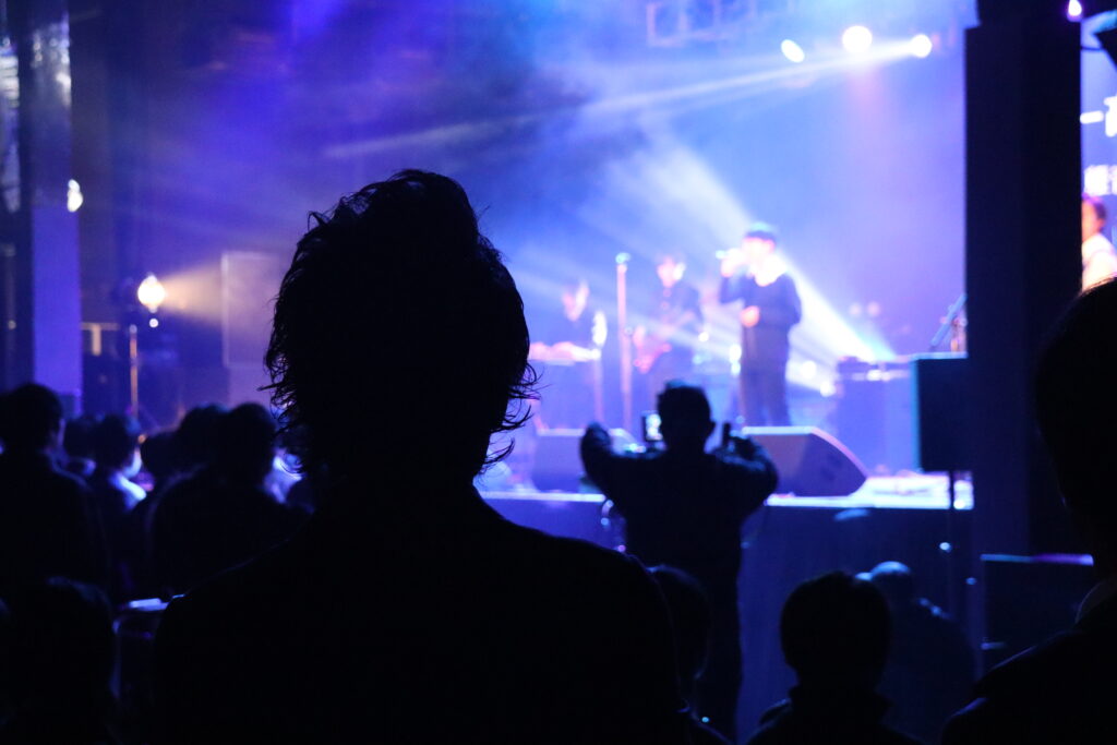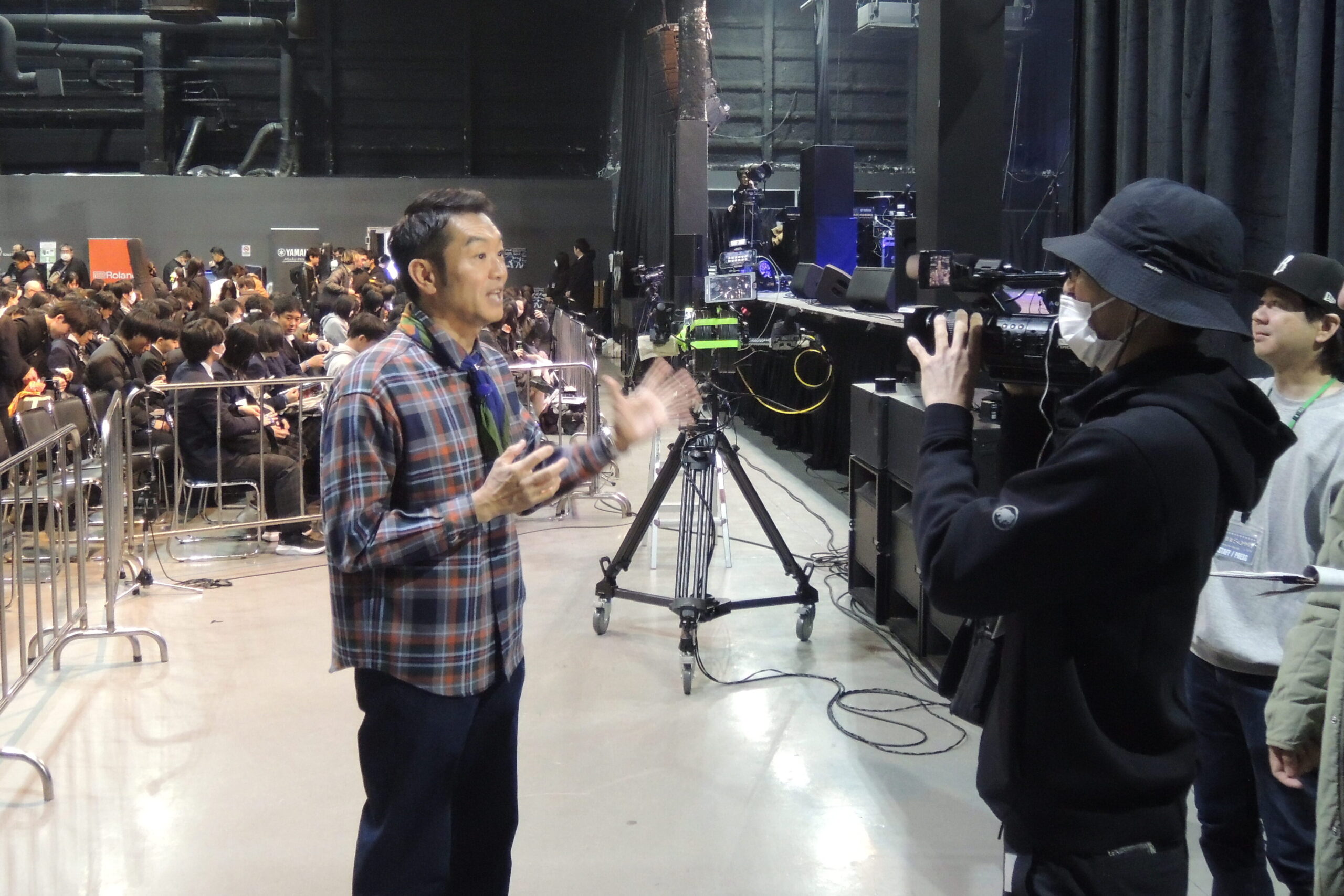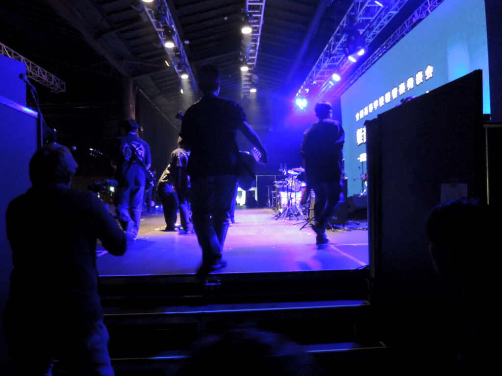 ステージ下の控室。4人組バンドのドラマーが、ギタリストとボーカルに声をかけています。「大丈夫」と応えながらも、二人ともどこか顔がこわばったまま。なんとか成功させたい…。そう祈るかのように手を組むボーカルの姿が印象的でした。
