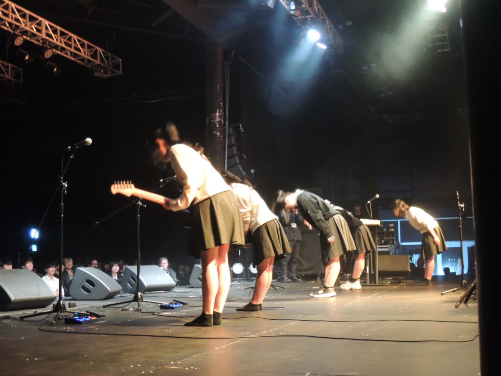 ひとりきりの弾き語りスタイルで参戦した女子部員は、「緊張しちゃいますよぉ」と言いながら控室で見せていた不安げな姿から一転、出番直前には背筋をピンとさせ、ローファーと靴下を脱ぎ、はだしのままステージに駆け上がっていきました。その堂々とした歌いぶりは、まるで高校生ではなく、音楽を全身で楽しむアーティストとしてこの目に映りました。