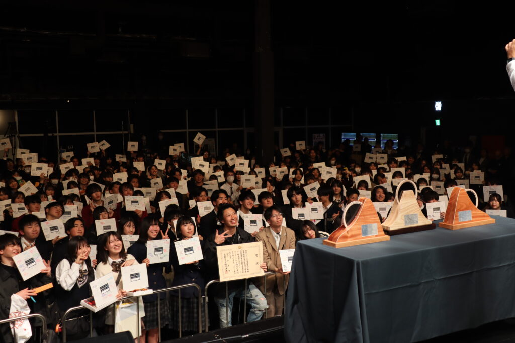 大会実行委員長の本夛剛人先生による「日本一熱い、高校生ロックバンドの頂点を決める戦いを始めましょう」という熱いエールで始まった開会式。最も評価の高かったバンドには、文部科学大臣賞として、日本一を決める戦いにふさわしい〝富士山〟をイメージしたオリジナルの盾が贈られることが発表されました。