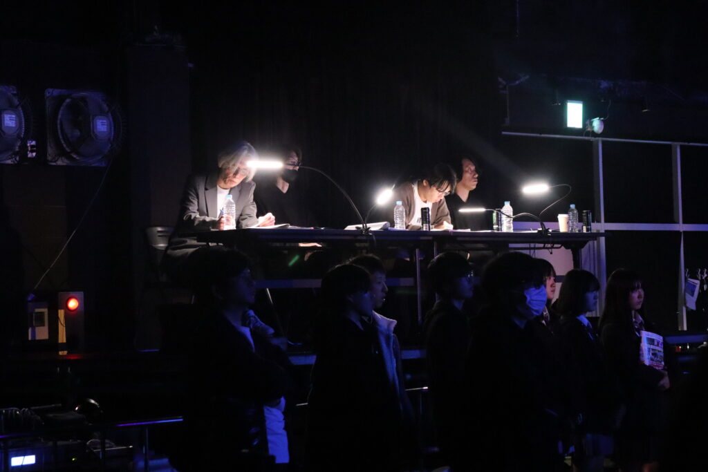 本大会の審査は、レコード会社や音楽専門学校などから集まった5人のプロフェッショナルたちが、2日間かけてすべてのバンドの演奏を聴いておこなわれました。そして会場内には、大会の様子を伝えるためのテレビカメラがずらりと並び、名古屋のテレビ局(東海テレビ、中京テレビ、CBCテレビ、メ~テレ、テレビ愛知)が共同で行う動画・情報配信サービス「Locipo」で配信されました。また、大会の司会は、愛知・名東高校放送部の二人が務め、部員の松葉心音さんと彦坂優月さんのアナウンスによって大会はスムーズに進行しました。